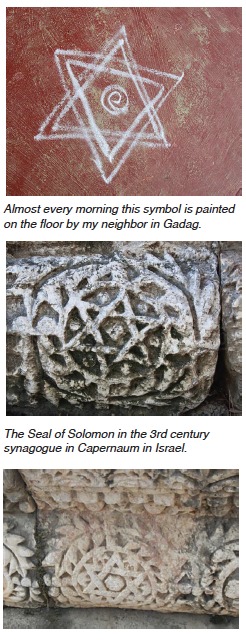 The Jewish history book of 1.kings was written during the Babylonian exile ca. 550 B.C. 1 Kings 4:34: «From all nations people came to listen to Solomon’s wisdom, sent by all the kings of the world, who had heard of his wisdom.» This explains how king Solomon could be a very well known person in the Middle East, North Africa, Persia and India. A claimed seal of Solomon is used as a symbol in most synagogues around the World even today. This symbol is also used from Morocco in the West to Karnataka in India to the East. In Tandas around the city of Gadag the Banjaras paint this symbol on their doorsteps and floors. You should ask your self a few questions: Why? How did this tradition start? What was their original source of inspiration? There are other narratives to the origin of this symbol. But they must all be considered opinions, since there are no written ancient records that can be used to support their viewpoint. Scientists were able to decode Egyptian hieroglyphs and rediscover 4.000 years of the Nile valley’s history. How? With the help of Hebrew references to Egypt found in the Bible. There are 660 of them in New King James version. Only the city of Jerusalem have more references, the total of 815. You can read more in my book: “Gypsy and daughter of Israel Gor Banjara”. https://banjarabook.com